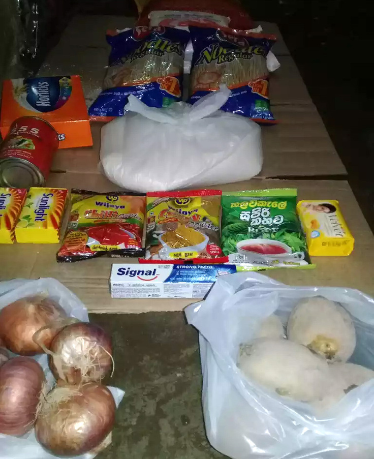 Rice 5kg, Potato 2.5kg, Onion 2kg, Chili Powder 500g, Masala Powder 440g, Dhal 500g, Coconut Oil 1bottle, Coconut Powder 900g, Salt 1pack, Tin Fish 1can, Dry Noodle 1.2kg, Wheat Flour 3kg, Tea 600g, Milk Powder 800g, Sugar 1kg (total Rs.8545).