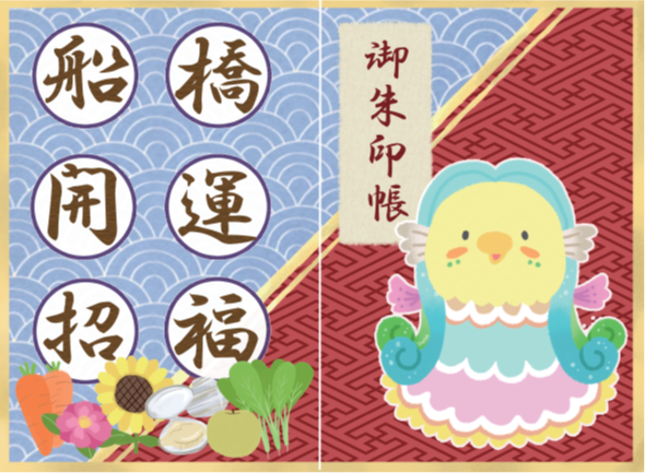 開運「(はなちゃんのアマビエ)御朱印帳」(※市内御朱印MAP付き)と「(船橋カラー)アマビエキーホルダー」