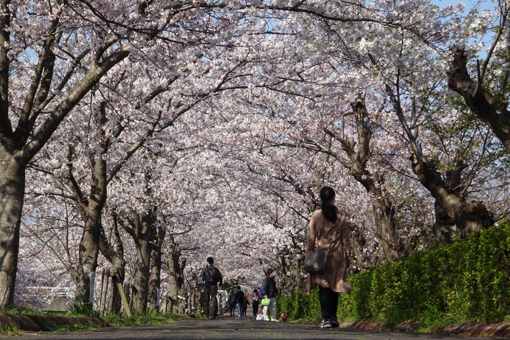 JR船橋駅より徒歩約15分です。海老川の両側に約500本の桜が咲き誇る桜並木があります。市内桜の名所の1つで、例年多くの人が訪れます。