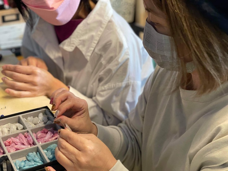 その言葉を受け、私たちはジュエリー制作の技術を教え、数十分でも時間がある時に作業ができる環境を整え、一緒に働ける居場所を作る事にしました。