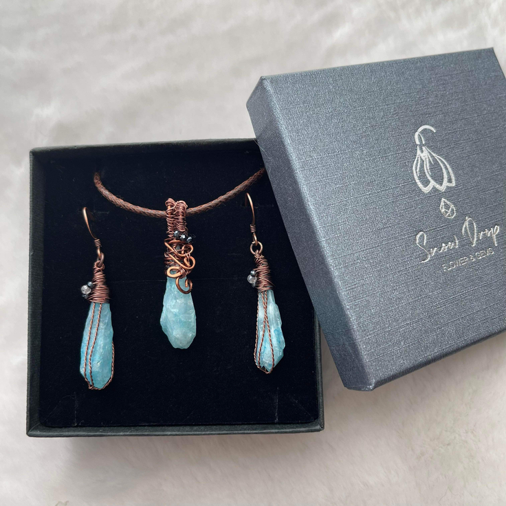 6、Drop ラフロック ネックレス / ピアス セット(blue)