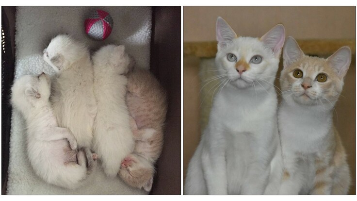 ▲保護したばかりの頃のトロとマルタ ▲我が家にやってきてもうすぐ4年!こんなに大きく!