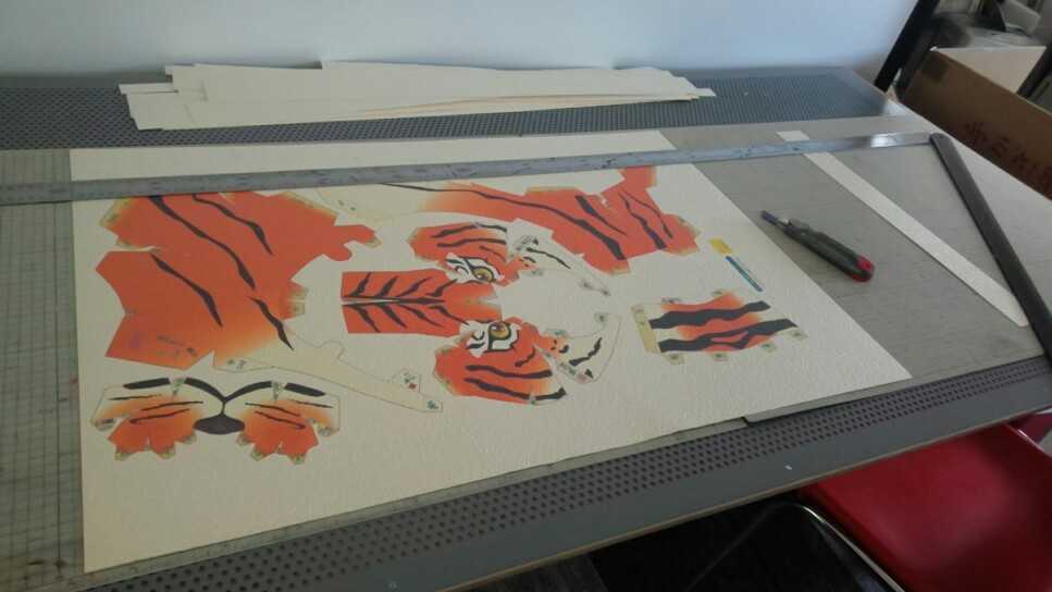 東北のほうから大トラの型紙の注文が入ったので、印刷して発送。年末に組み立てたものと同じもの。初めて見た人はたいてい驚くサイズ。これでもまだ中くらいのサイズで、ただ、補強無しで長年展示するにはここまでかな。1.6mキリンと同じクラスの耐久性だ。