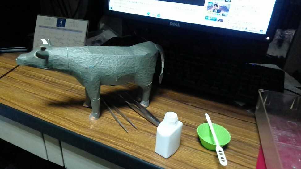 夕食後、しばらく放置していた牛のサンプルの組み立て。