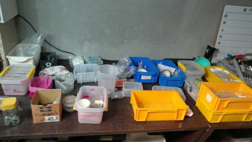 クギの小さいのは紙コップに入れ、そこそこのやつはゴールドブレンドの空き瓶に入れて、ドアの棚に収納。量の多いやつは100均のコンテナに収納。ビスは2ミリから6ミリまであるな。カラーやワッシャーはサイズを分けずに収納。工作や修理の時には重宝する。カシメのリングやメタル、「ギャングネイル」と呼んでいた、板を平たく連結する波板状の金属ジョイントなんかも出てきた。学生時代も、今と同じようなことやってたわけだな。二軒長屋を借りていてスペースはそこそこあって、部屋で工作していると、大家さんの娘を筆頭に、近所の小学生の女の子たちが毎日常駐していて、なんか勝手に絵を描いたり工作したりしていたなあ。いま、こども歴史文化館であの頃と同じようなことをやっているわけだ(^^)