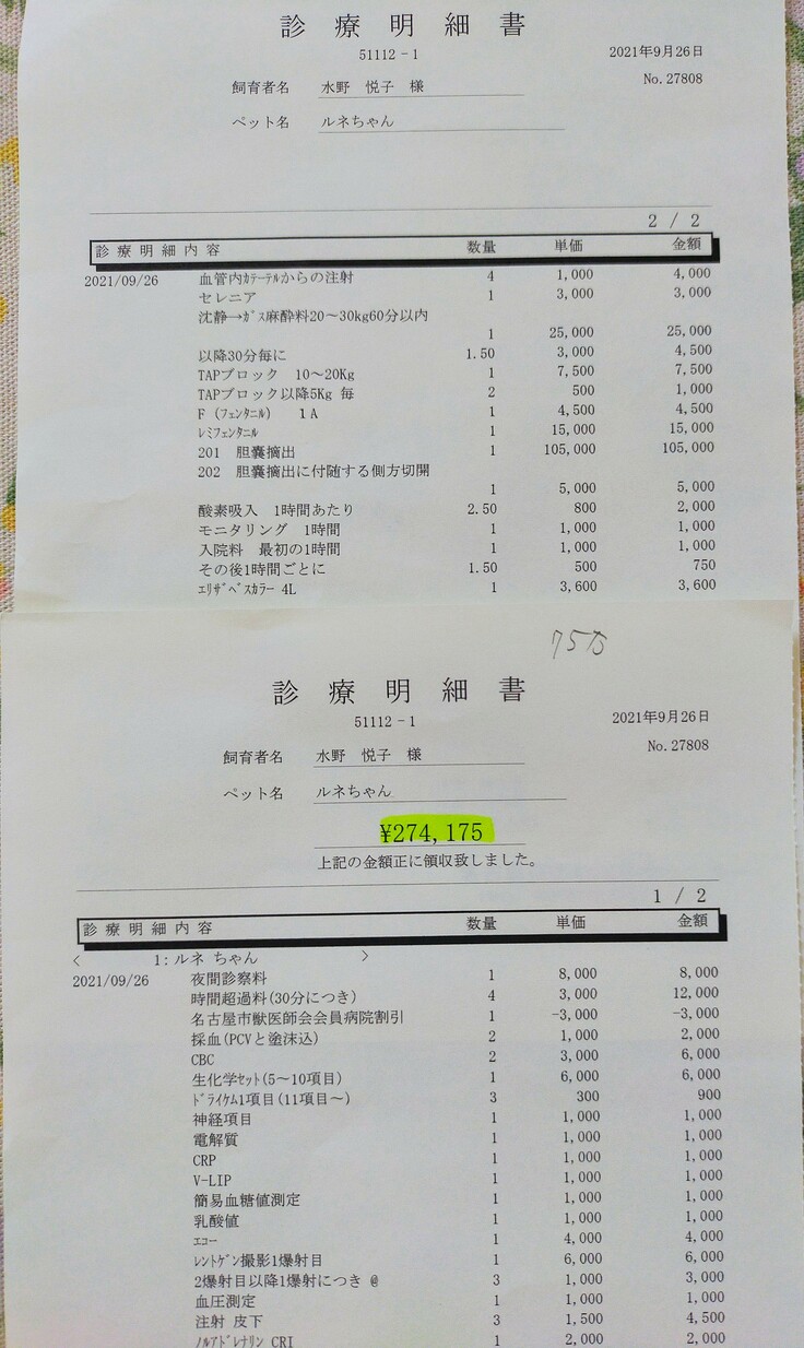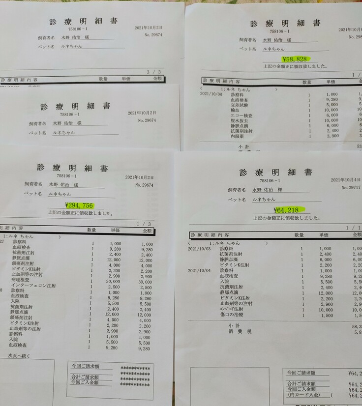 約100万 手術/入院/検査(病理・CT・エコー・血液)/輸血/点滴・投薬)