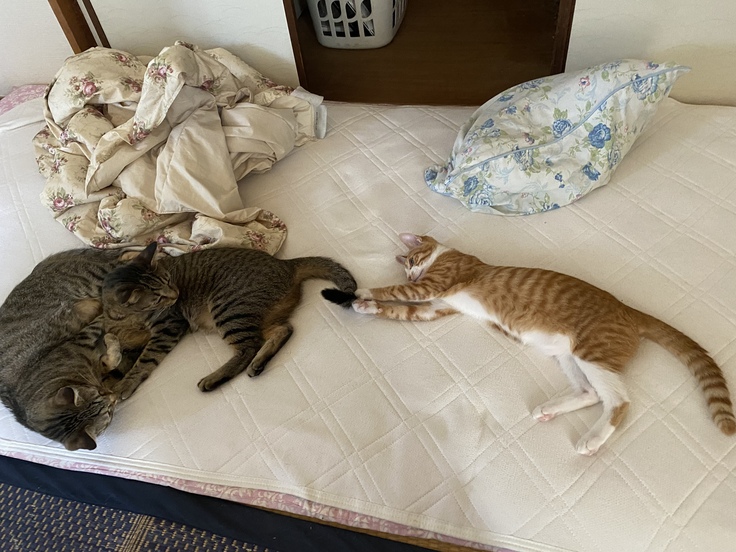 2020年の夏頃から始め、今年の春に保護猫カフェにてきなこもちと出会いました。