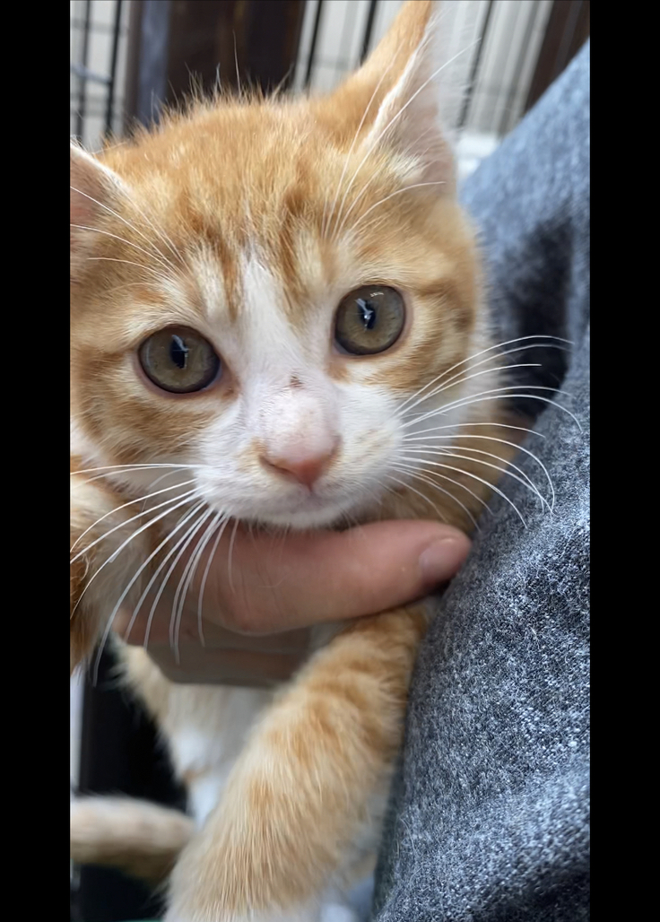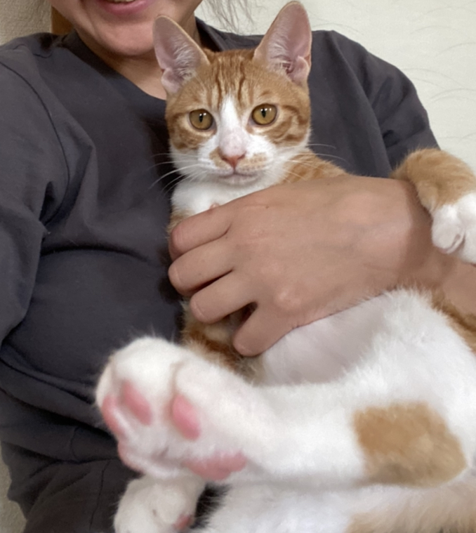 きなこもちは保護猫カフェから近くの住吉区万代池付近で発見され保護されました。