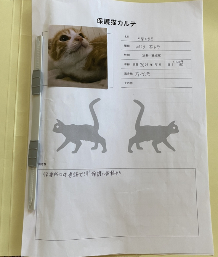 「保健所には連絡できないので、保護してください。」と依頼がありました。