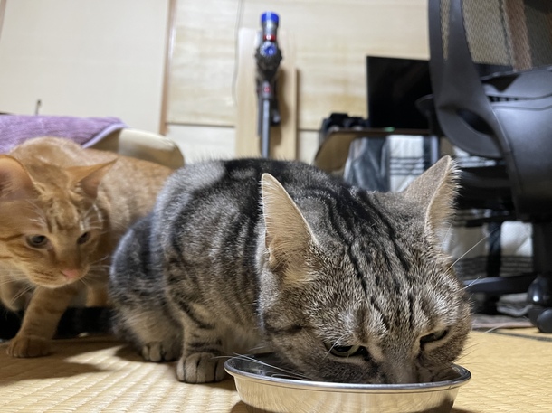 今日もチャチャくんもはのんちゃんの餌を狙ってます。