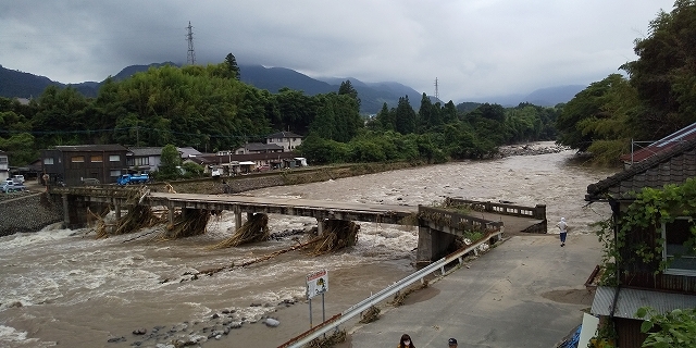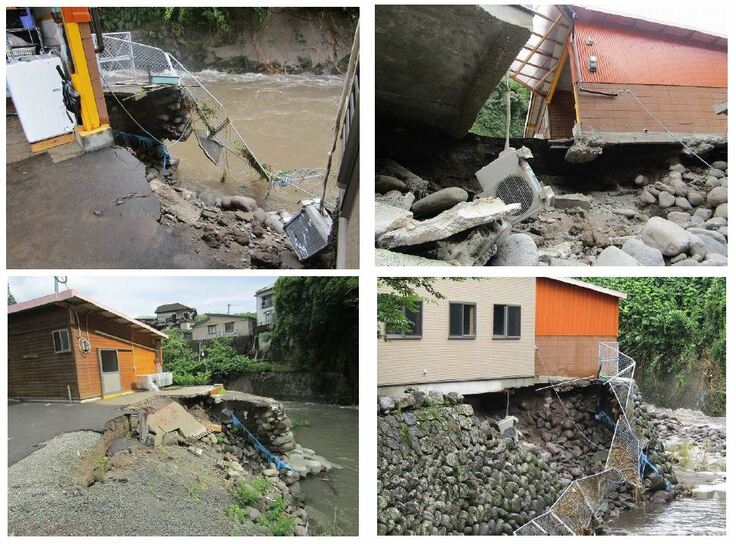 昨年7月8日、九州北部を襲った豪雨により、施設の横を流れる小挾間川が氾濫し、施設の中や園庭に泥土が入ってきました。さらに園庭の一部が抉り取られ、施設の一部も宙に浮いた状態となりました。