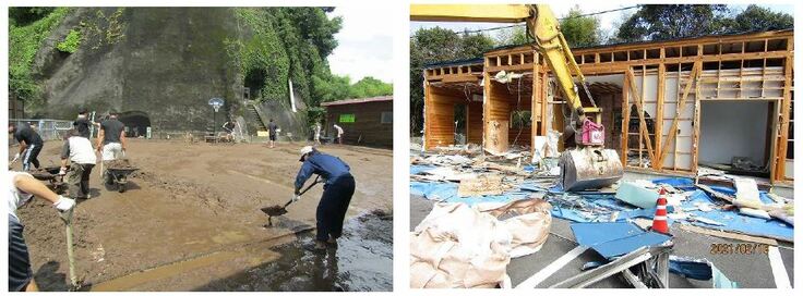 侵入してきた泥土の除去や汚れの掃除は、子ども達が通う学校の先生達が総出で手伝ってくれたこともあり、人力でなんとか下の状態に戻しましたが、施設の一部と遊具・教材の保管部屋があった事務所の建物、防護フェンスは解体せざるを得ず、また多くの遊具や教材も廃棄せざるを得ない状態となりました。