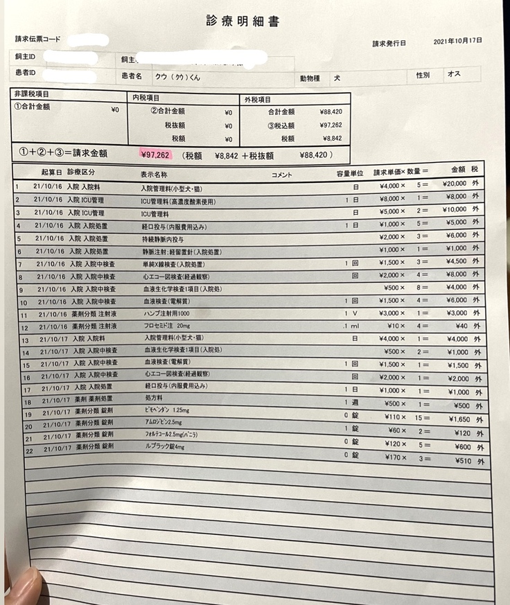 クウの体調も優れず、この2ヶ月で3回入退院を繰り返している為、予想以上に医療費がかかっております。