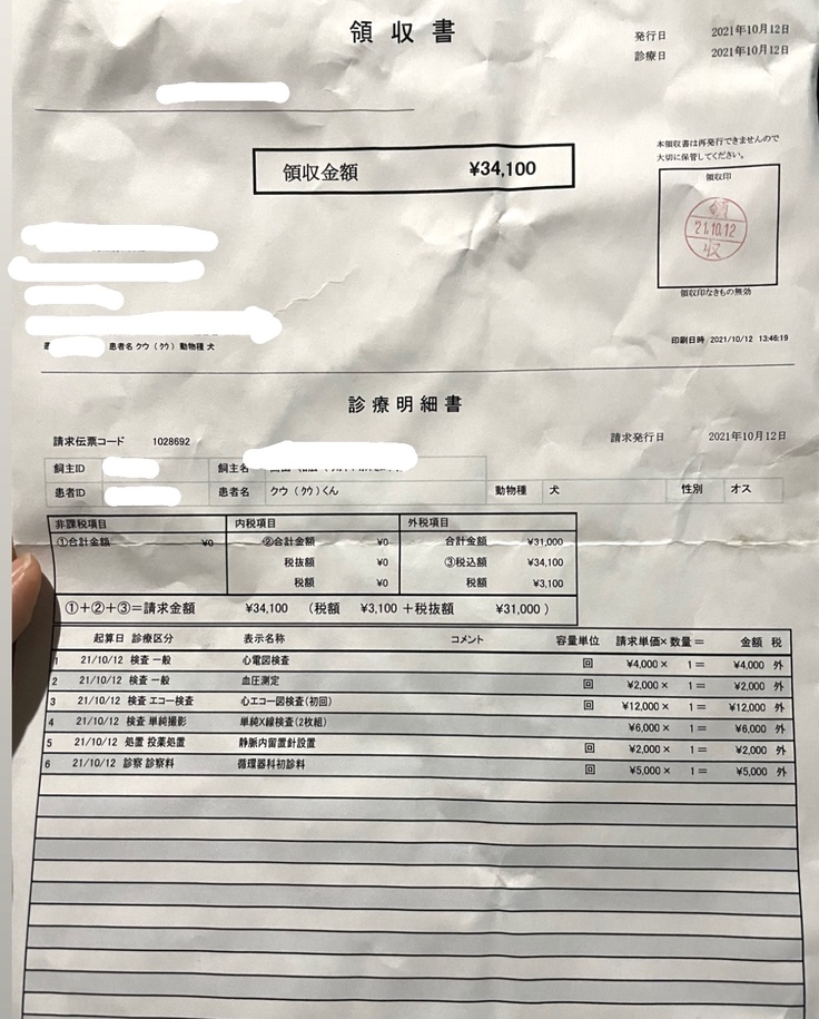 我が家に来て1回目のワクチンでは異常はなく、その後の2回目のワクチン・検査の際、