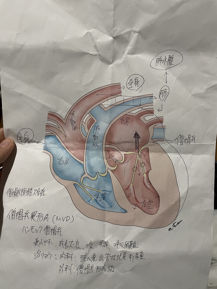 先天性心疾患で左心室の乳頭筋の位置がズレている為僧帽弁がうまく働かず血液を運べない状態です。