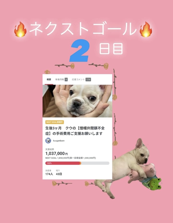 ※ご支援全てをクウの手術費用に充てさせて頂きます。