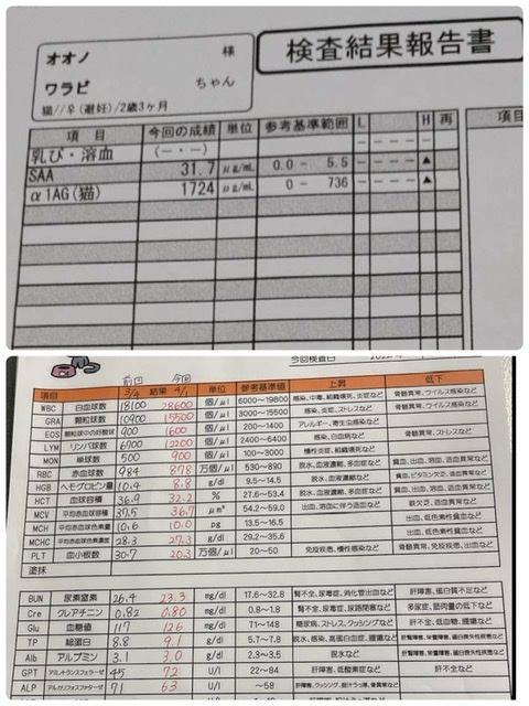 わらびが少し風邪気味だった為調子が良い時に血液検査に次回行って来ます