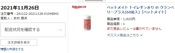 「トイレすっきりクランベリープラス D-マンノース入り」は、マンノースがグルコース代謝の進行を妨げ、がん兵糧責めを期待できるため。発送まで1週間~10日ということでまだ来ていません。