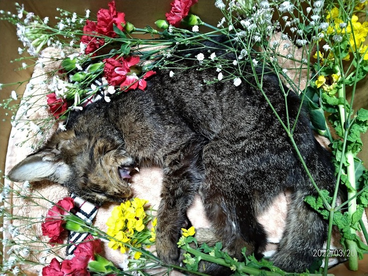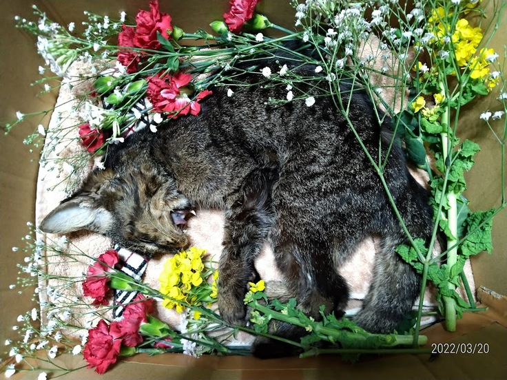 昨日まで外に行きたがれば散歩に出てずっと思い通りに過ごし、どんどん痩せてきてはいたものの、最後の1か月は癌の進行も止まったように見え、痛そうにすることもなくQOLは最高に良かったのではないかと思います。願わくば口が開きっぱなしになる前に止まってほしかったですが。