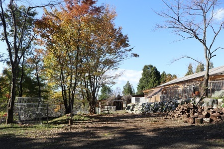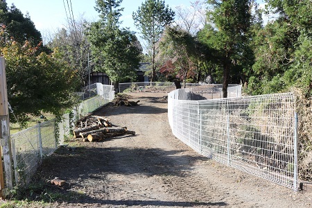 奥と手前をフェンスで囲み、奥は出入り用の二重扉を設置します。左側に見える紅葉も紅葉しつつあります。