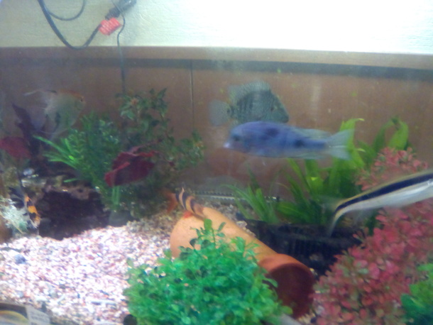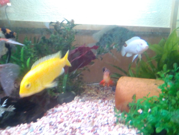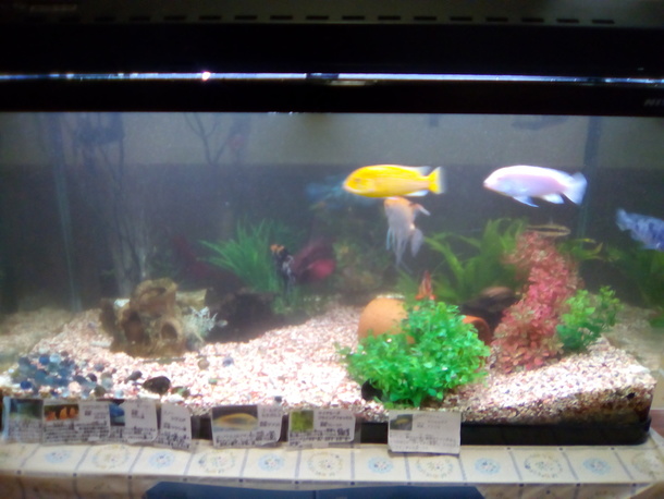 この幼稚園の水槽の特徴は、シクリッドと呼ばれる自分たちで子育てする頭のいい魚の水槽です。