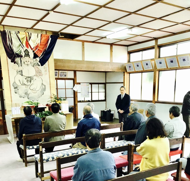 平成29年11月23日、本荘神社、例大祭後、自治会長様より各組長方へ本事業の完成報告を行って頂きました。