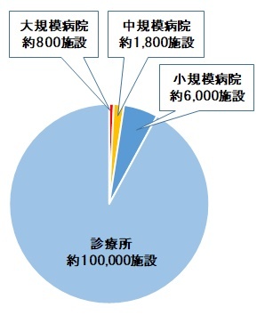 画像診断を習得する必要のある医療従事者は、臨床現場の内科医11.5万人に加えて研修医や技師も含めて全国に約20万人おられます。しかし、これらの医療従事者が所属する施設の中で「専門医」が常駐している大病院は全国の医療機関のわずか1%もありません。