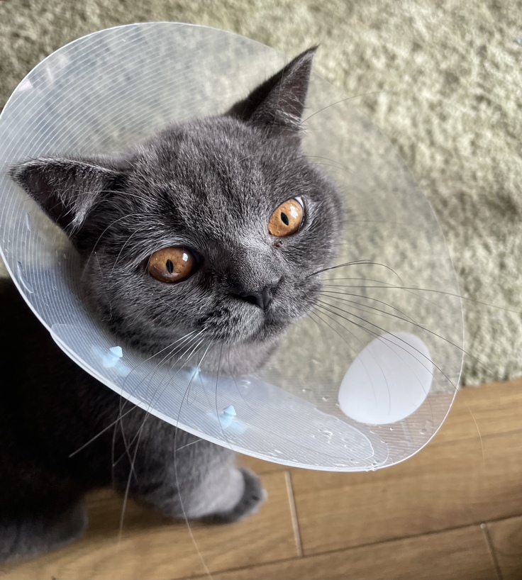 術後のカラーを外してあげたら、少し元気を取り戻したように感じました。