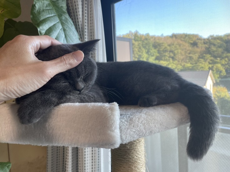 しかしながらペット飼育不可の家に住んでいた為、お迎えはできないだろうなぁと諦めていたのですが、2021年6月~ペット飼育可となると管理会社から連絡があり諦めていた猫との暮らしが実現できる!!というタイミングすで出会ったのがもぐでした。