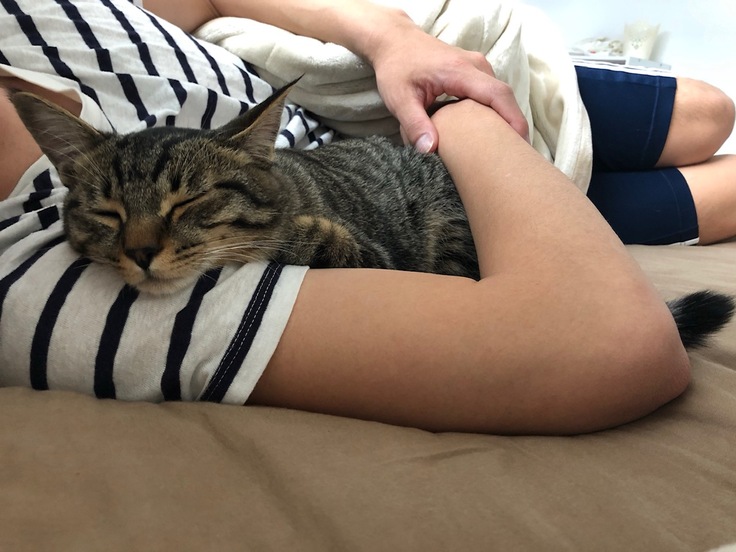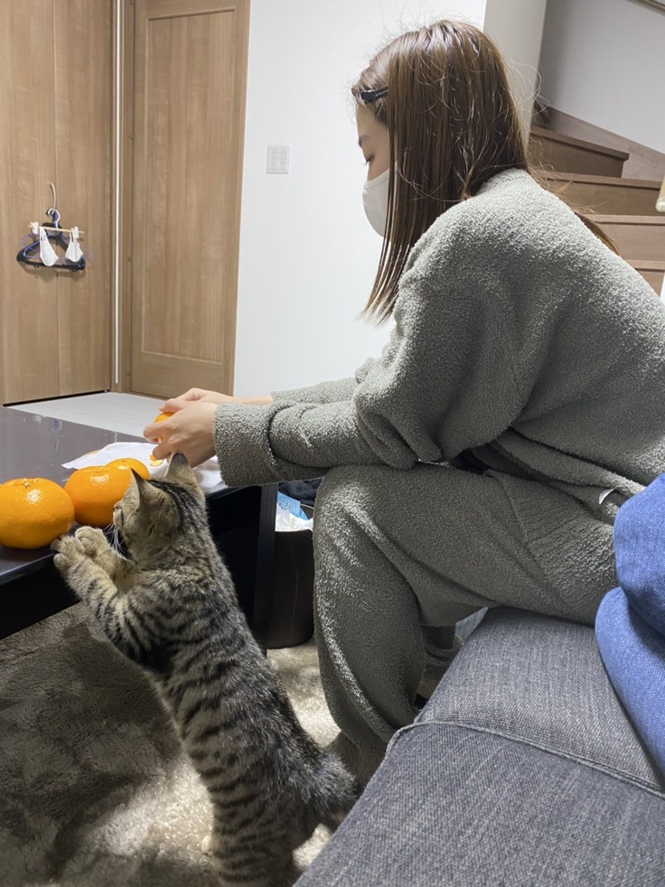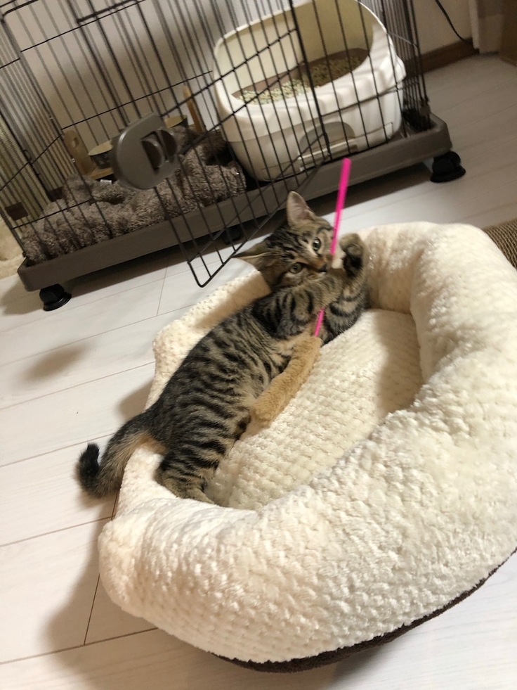 食べること、遊ぶこと、寝ることが大好きで、とにかく甘えん坊で毎日一緒に寝ています。