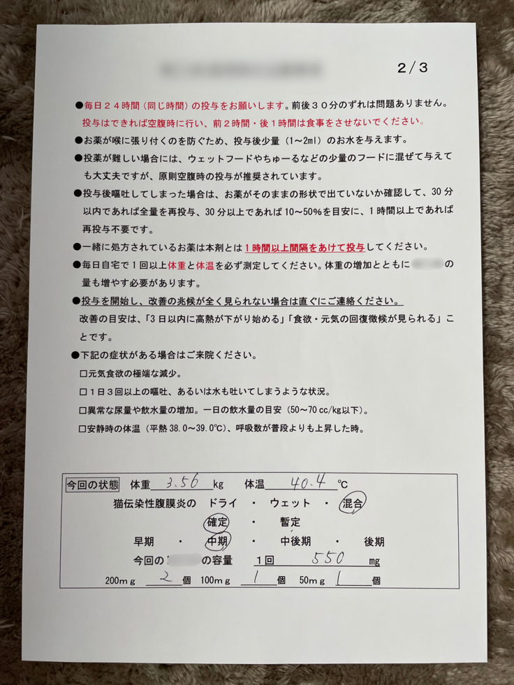 「猫伝染性腹膜炎(FIP)混合タイプ中期」と診断を受けました。