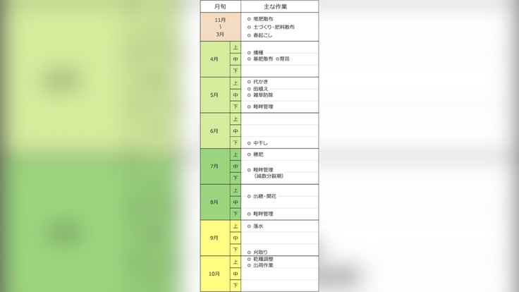 全農より引用http://www.mg.zennoh.or.jp/learn/rice/process/calendar.html