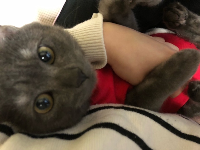 寝起きです(/ω\)そろそろ手が・・・重たいよ・・・💦降りてよ~💦本当はニヤニヤですけどね(・∀・)ニヤニヤ♡