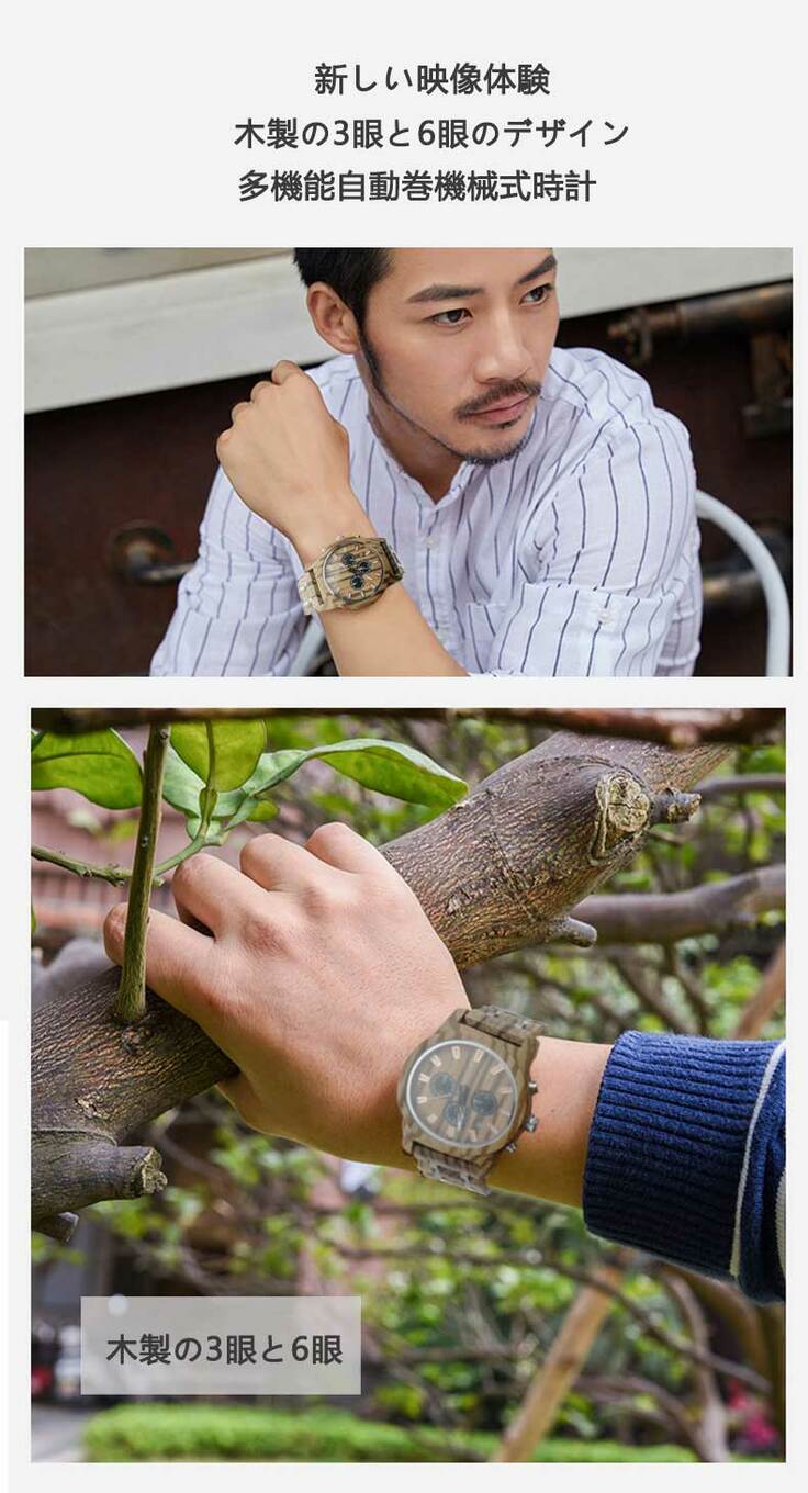 木製のケースは、文字盤に力強いメカニカルな雰囲気を与えています。