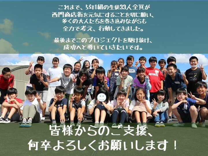 こちらのプロジェクトは、商店街の方と一緒に行う地域貢献プロジェクトです。会計については商店街の方々にお手伝いいただき、実施については相模原市立富士見小学校5年1組が行わせていただきます。