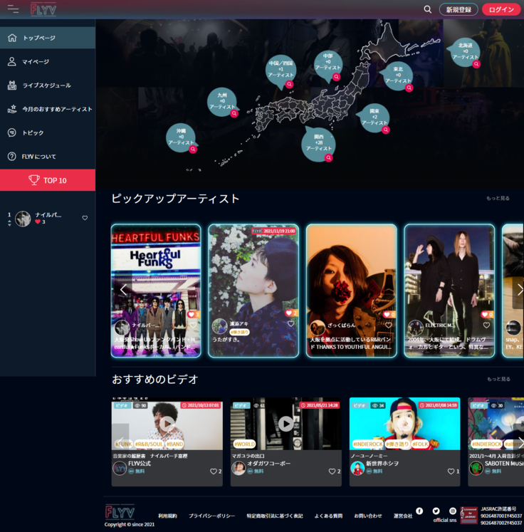 FLYVは全国のライブハウスやローカルなミュージックシーン、インディーズシーンなどにフォーカスした音楽配信のプラットフォームになります。