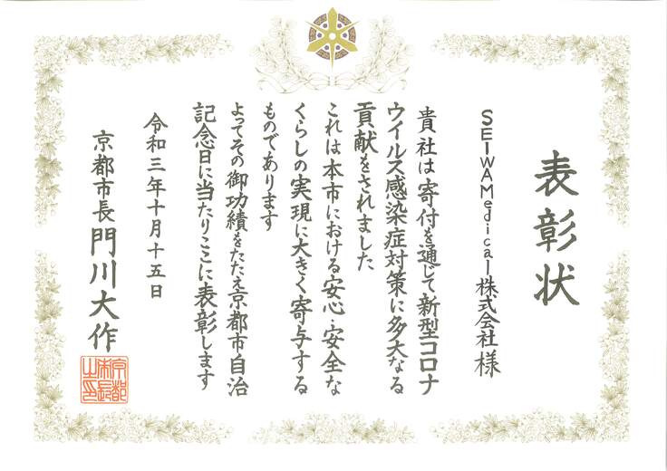 また、令和元年10月より、医療、科学の関係者各位のご支援の下、除菌液の製造販売に着手させていただきました。