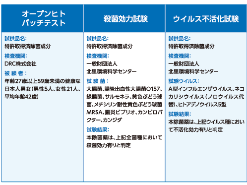 また、次亜塩素酸やアルコール類は、使用後短時間で分解、蒸発してしまい効果が低減または消滅するため、持続効果という視点ではあまり期待できません。
