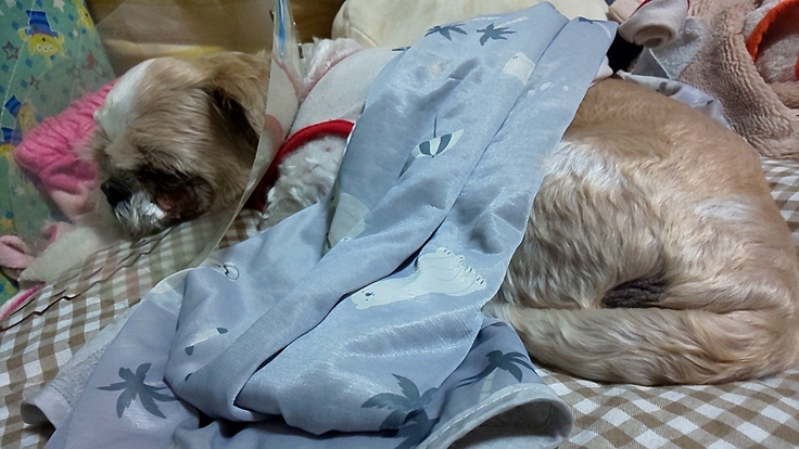 フロセミドの服用後、息苦しそうにすることは目に見えて減りましたが、今度は食事を摂ろうとせず、ほぼ一日寝ている状態が続きました。そこで血液検査を行い腎臓の数値が倍ほどに跳ね上がっていたため先生と相談のうえ、スピノラクトンに戻すことになりました。