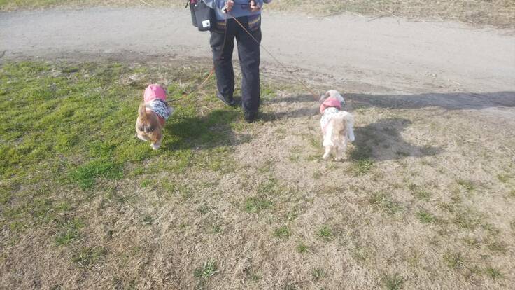 かるの調子が悪く一緒に散歩に行けないときには何度もかるを待つように立ち止まり、振り返っては途中で歩かなくなってしまうほどです。