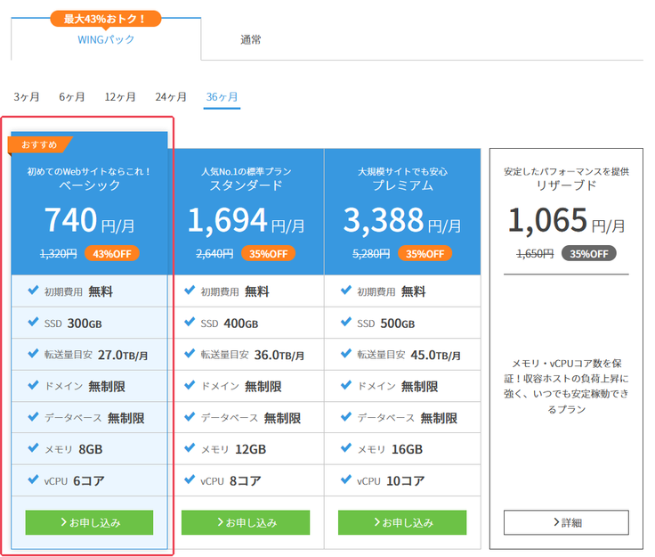 ホームページ作成のためのドメイン取得に関しては「ConoHa」のレンタルサーバーの“wingパックベーシックプラン”を選択します。