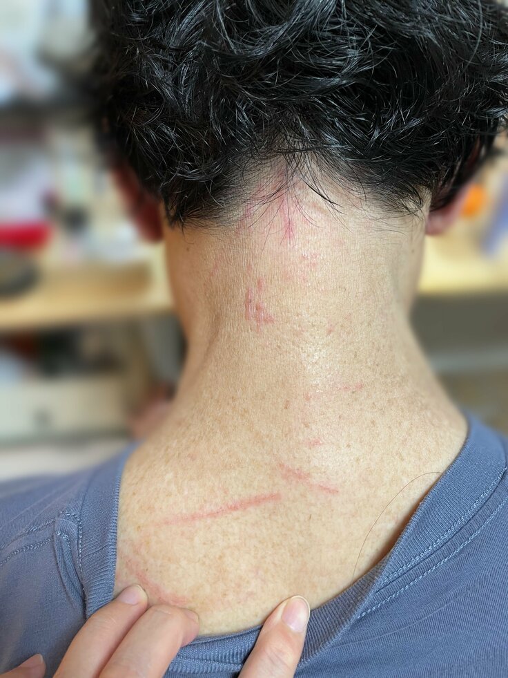 激しいかゆみが起こると血が出るまで搔きむしり、症状が長引くとジュクジュクした汁で皮膚がボロボロになりました。