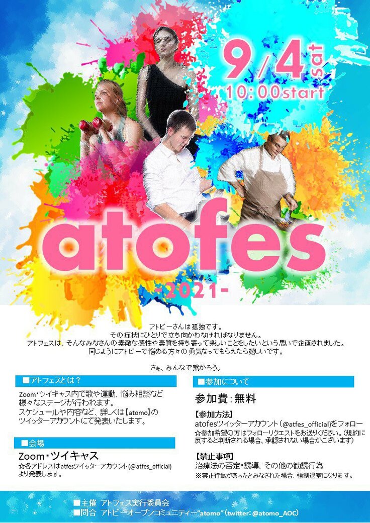 そんな思いから、zoomやツイキャスを使ったアトピーさんで創るイベント『atofes(アトフェス):現在は“跡祭”に名称変更』を開催しました。