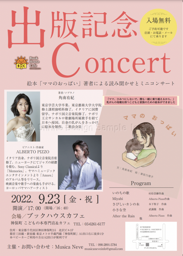感謝の気持ちを込めて、この度「ママのおっぱい」出版記念ミニコンサートを開催することとなりました。