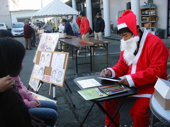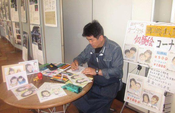即興似顔絵を(ピエロ・おさる等の変装で)イベントや祭り、福祉関連の慰問等でほのぼのタッチのにがお絵を描いています。