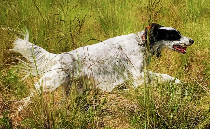 鳥を見つけると前足を曲げて、ここにいる(ポイント) と、ハンターに知らせます。