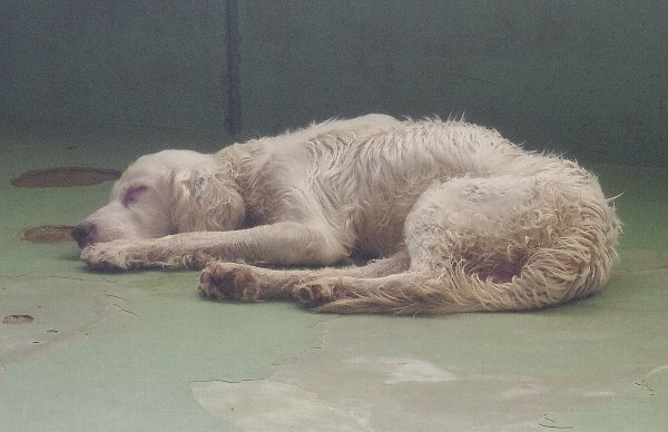 保護時には既にフィラリア症にかかり、栄養失調で痩せこけ、脱毛や絡まった毛並みなど痛ましい姿が大半を占めます。保護した際に、既に乳腺腫瘍、子宮蓄膿症に侵されている雌犬の多いこと。無残な姿には、何度目にしても胸が詰まります。
