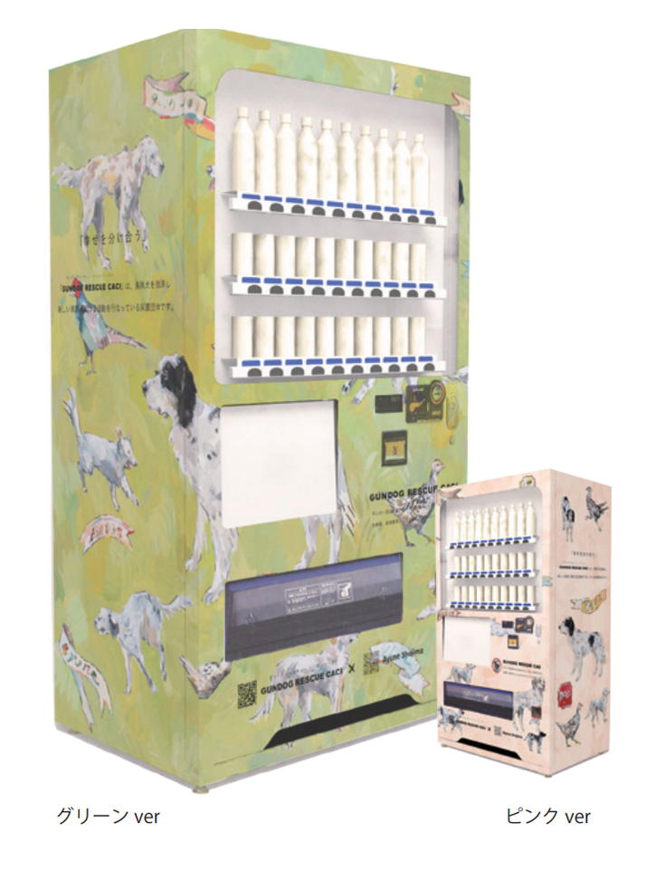 私にも何かできることはないかと思案していた矢先CACI寄付型自動販売機設置募集のPRが飛び込んできました。寄付型自動販売機とは販売機設置料など一切無料。売上の一部を、CACIに自動的に寄付ができる仕組みです。早速、申込みをし設置しました。自販機を設置することで、鳥猟犬遺棄問題を世に知らしめると共にこれ以上、遺棄される鳥猟犬が現れませんようにとの願いを自販機の飲料水1本1本に託しています。