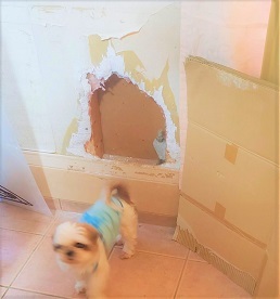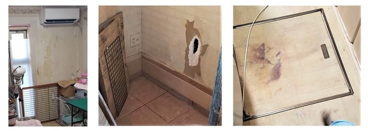 ① 壁に開いた穴の数々の修繕