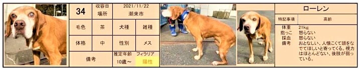 道端で佇んでいたローレンを近隣住人が発見し、センターに保護されました。